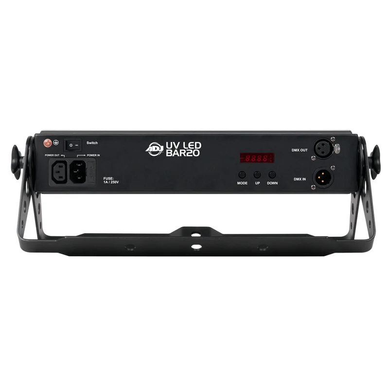 - Das Display zeigt DMX Adresse und Modus als eine vierstellige Zahl an. Das heißt, 1123 wäre Adresse 123 mit Kanallayout 1